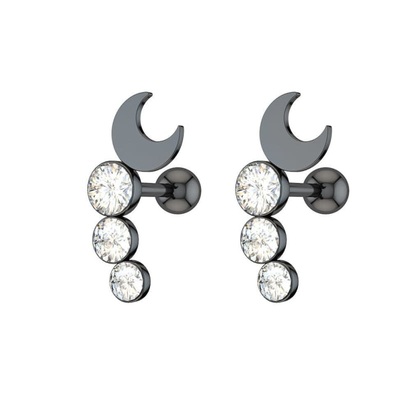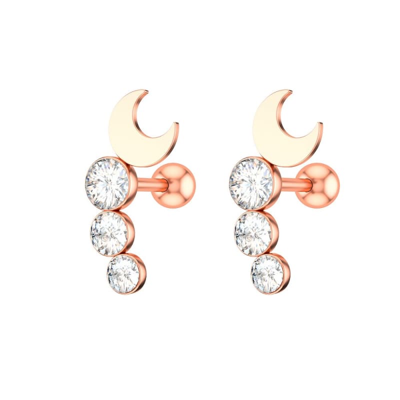 percing conch avec 3 belles pierres de zircon accompagné de son design en forme de lune.