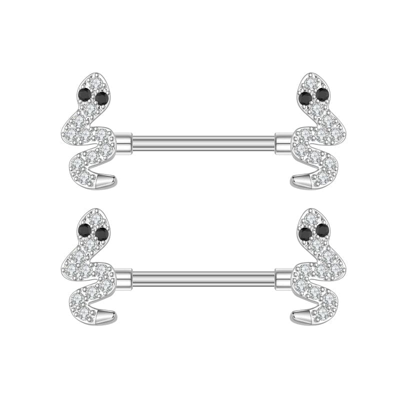 Le piercing téton serpent se distingue avec son design si particulier .Il est en effet, constitué d’une tige et de deux embouts avec de superbes serpents, incrustés de pierre de zircon pour une brillance inégalable.